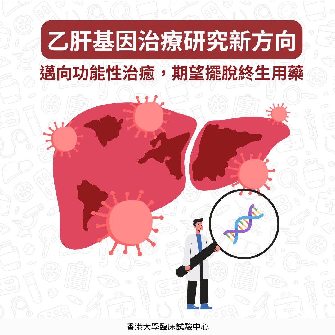 港大醫學院臨床醫學學院內科學系研究團隊一直積極研究創新治療方案,致力透過基因治療技術,期望從病源入手,消除體內乙肝病毒,邁向「功能性治癒」的目標。這不單有望讓患者擺脫長期服藥的負擔,亦有機會進一步降低日後罹患肝硬化及肝癌的風險。